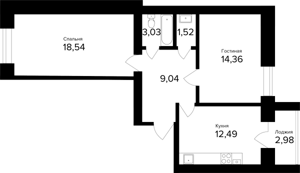 Новая 2-комнатная квартира в ЖК Норские резиденции на 3 этаже площадью 60.47 м² в 1 подъезде номер 12