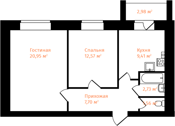 2-комнатная, 56.41м²