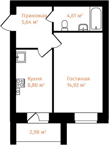 Новая 1-комнатная квартира в ЖК Норские резиденции на 5 этаже площадью 35.46 м² в 1 подъезде номер 25