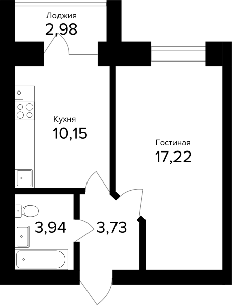 Новая 1-комнатная квартира в ЖК Норские резиденции на 2 этаже площадью 36.53 м² в 1 подъезде номер 7