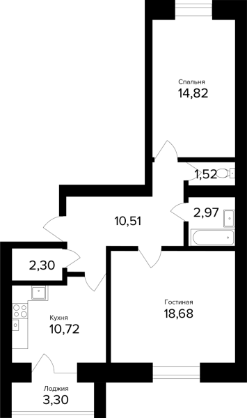 Новая 2-комнатная квартира в ЖК Норские резиденции на 3 этаже площадью 63.17 м² в 1 подъезде номер 12