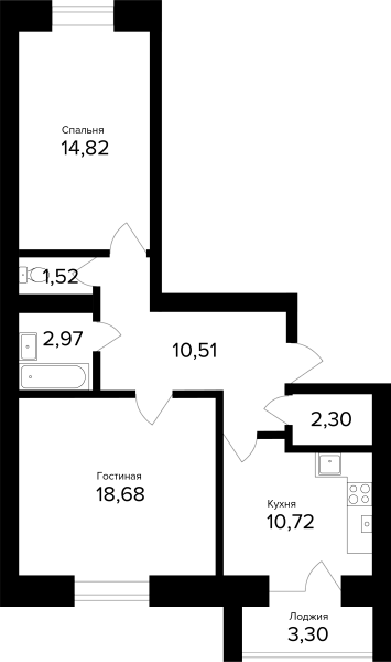 Новая 2-комнатная квартира в ЖК Норские резиденции на 3 этаже площадью 63.17 м² в 3 подъезде номер 44