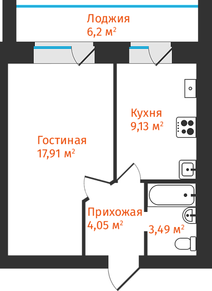 Новая 1-комнатная квартира в ЖК Норские резиденции на 3 этаже площадью 37.68 м² в 3 подъезде номер 50