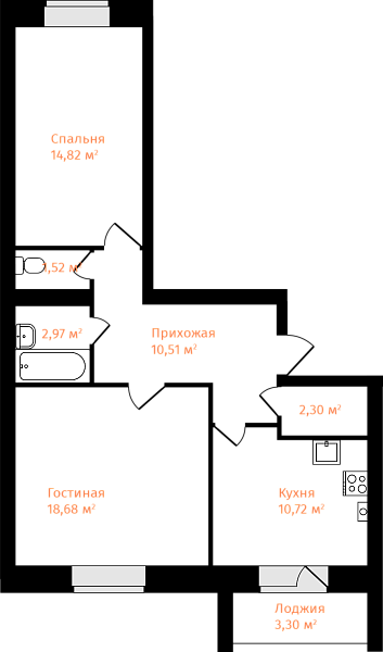 Новая 2-комнатная квартира в ЖК Норские резиденции на 3 этаже площадью 63.17 м² в 3 подъезде номер 44