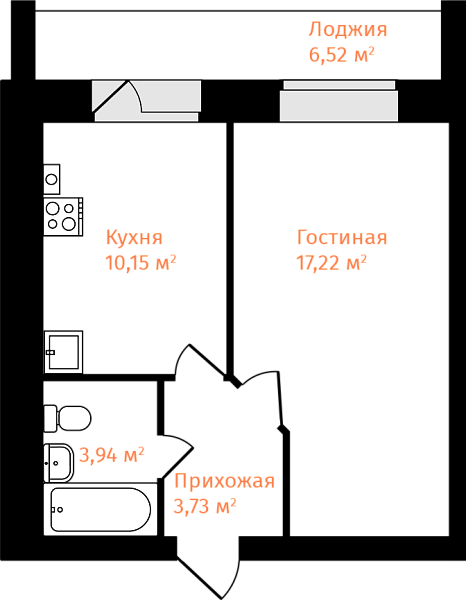 Новая 1-комнатная квартира в ЖК Норские резиденции на 4 этаже площадью 38.30 м² в 3 подъезде номер 50