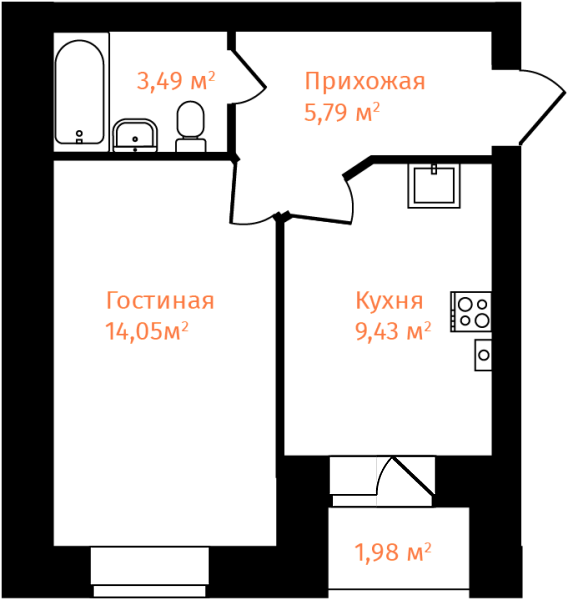 Новая 1-комнатная квартира в ЖК Норские резиденции на 1 этаже площадью 33.75 м² в 1 подъезде номер 2