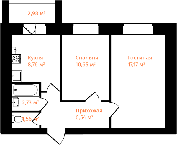 Новая 2-комнатная квартира в ЖК Норские резиденции на 5 этаже площадью 48.90 м² в 2 подъезде номер 44