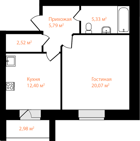 Новая 1-комнатная квартира в ЖК Норские резиденции на 2 этаже площадью 47.60 м² в 2 подъезде номер 33