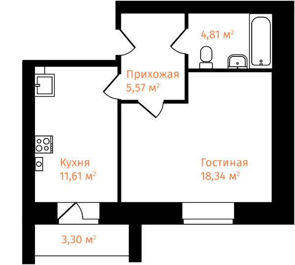 Новая 1-комнатная квартира в ЖК Норские резиденции на 1 этаже площадью 41.98 м² в 4 подъезде номер 48