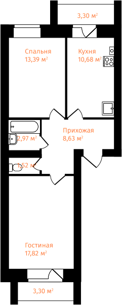 Новая 2-комнатная квартира в ЖК Норские резиденции на 3 этаже площадью 58.31 м² в 4 подъезде номер 52
