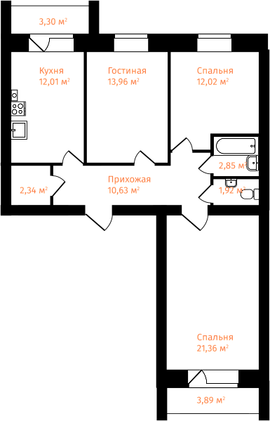 Новая 3-комнатная квартира в ЖК Норские резиденции на 4 этаже площадью 80.69 м² в 2 подъезде номер 27
