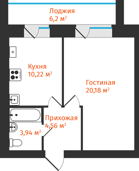 Новая 1-комнатная квартира в ЖК Норские резиденции на 3 этаже площадью 42.00 м² в 2 подъезде номер 31