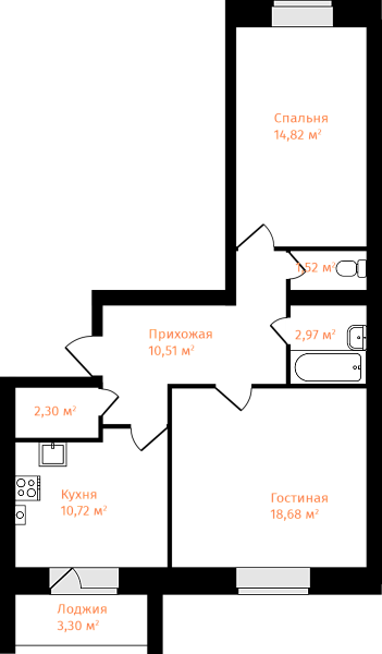 Новая 2-комнатная квартира в ЖК Норские резиденции на 4 этаже площадью 63.17 м² в 1 подъезде номер 16