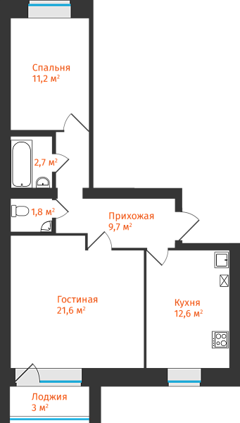 Новая 2-комнатная квартира в ЖК Норские резиденции на 2 этаже площадью 61.17 м² в 4 подъезде номер 53