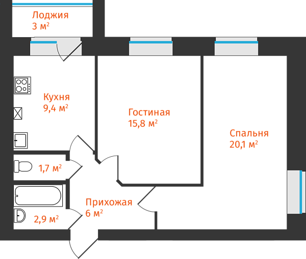 Новая 2-комнатная квартира в ЖК Норские резиденции на 1 этаже площадью 57.52 м² в 4 подъезде номер 51