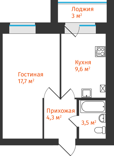 Новая 1-комнатная квартира в ЖК Норские резиденции на 2 этаже площадью 36.60 м² в 3 подъезде номер 38