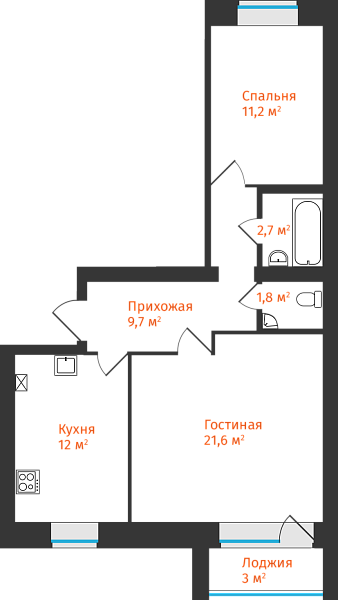 Новая 2-комнатная квартира в ЖК Норские резиденции на 4 этаже площадью 60.59 м² в 3 подъезде номер 48