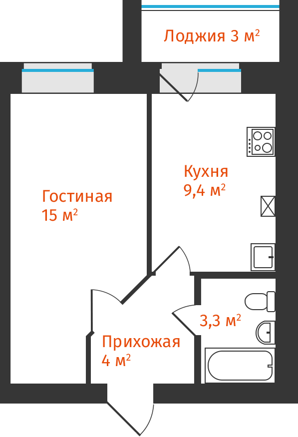 Новая 1-комнатная квартира в ЖК Норские резиденции на 4 этаже площадью 33.38 м² в 3 подъезде номер 42