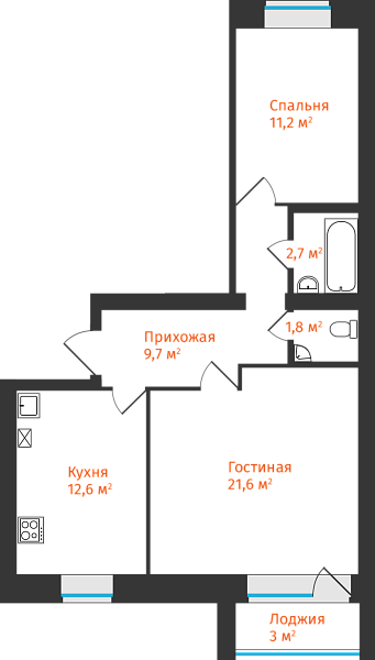Новая 2-комнатная квартира в ЖК Норские резиденции на 1 этаже площадью 61.26 м² в 2 подъезде номер 20