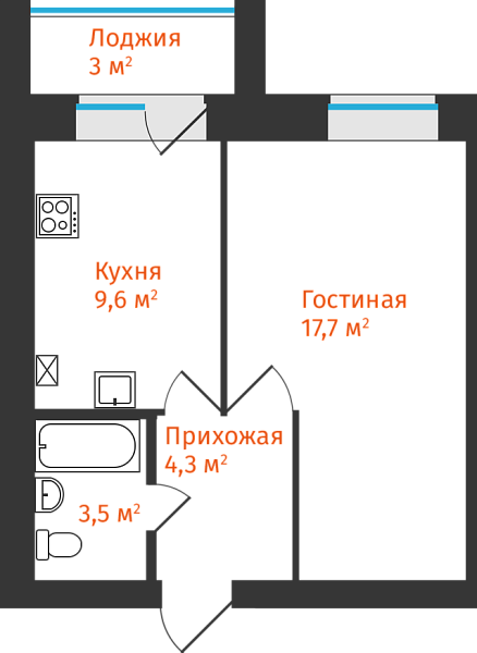Новая 1-комнатная квартира в ЖК Норские резиденции на 4 этаже площадью 36.60 м² в 3 подъезде номер 47
