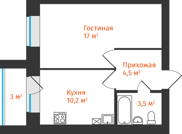 Новая 1-комнатная квартира в ЖК Норские резиденции на 1 этаже площадью 36.79 м² в 1 подъезде номер 3