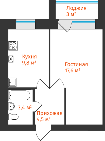 1-комнатная, 36.81м²