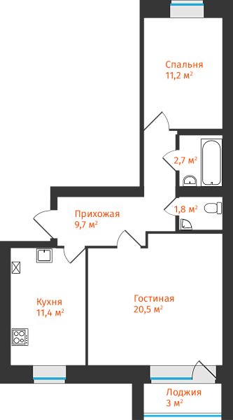 2-комнатная, 59.94м²