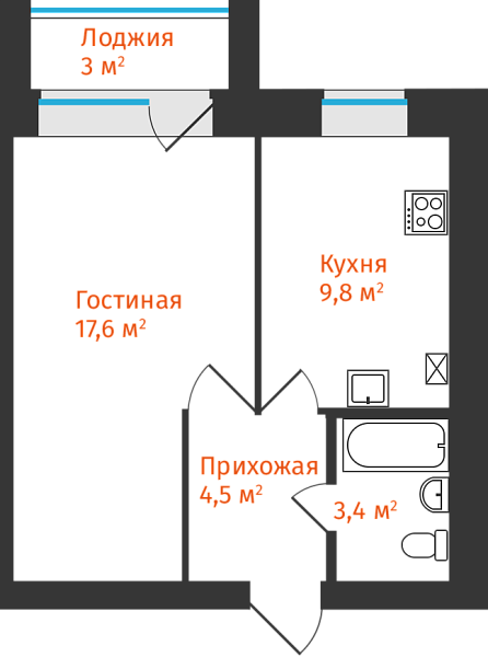Новая 1-комнатная квартира в ЖК Норские резиденции на 1 этаже площадью 36.81 м² в 3 подъезде номер 26