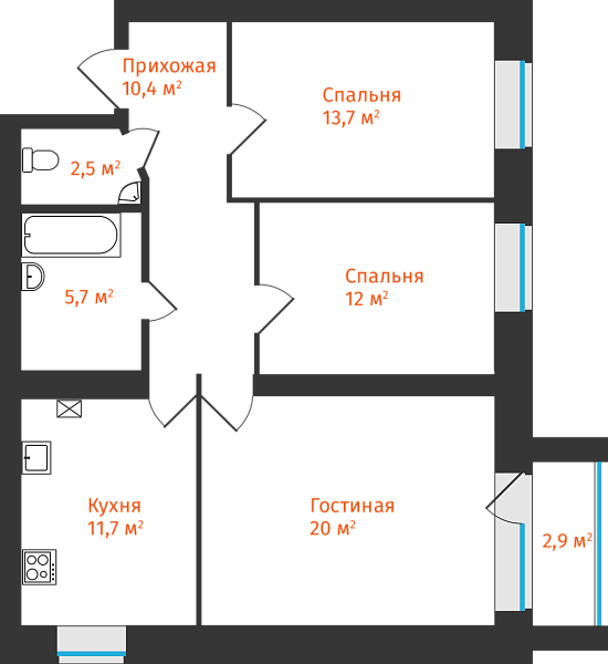 Новая 3-комнатная квартира в ЖК Норские резиденции на 1 этаже площадью 77.72 м² в 4 подъезде номер 40