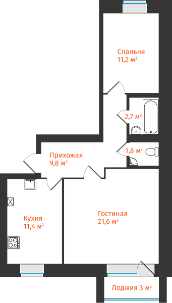 Новая 2-комнатная квартира в ЖК Норские резиденции на 1 этаже площадью 60.08 м² в 2 подъезде номер 16