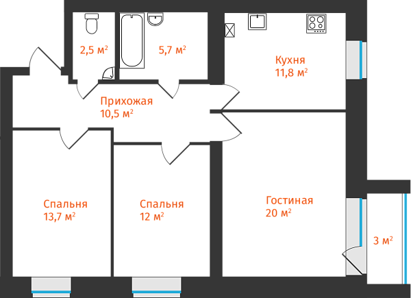 Новая 3-комнатная квартира в ЖК Норские резиденции на 3 этаже площадью 77.72 м² в 1 подъезде номер 9