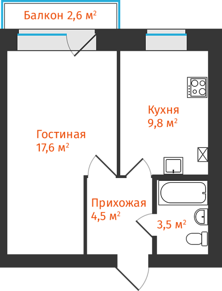 Новая 1-комнатная квартира в ЖК Норские резиденции на 2 этаже площадью 36.18 м² в 2 подъезде номер 18