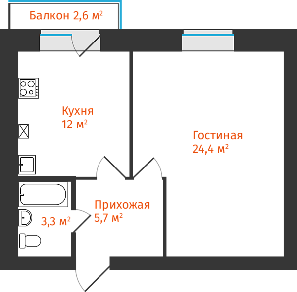 Новая 1-комнатная квартира в ЖК Норские резиденции на 2 этаже площадью 46.25 м² в 2 подъезде номер 23