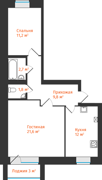 Новая 2-комнатная квартира в ЖК Норские резиденции на 1 этаже площадью 60.69 м² в 2 подъезде номер 17