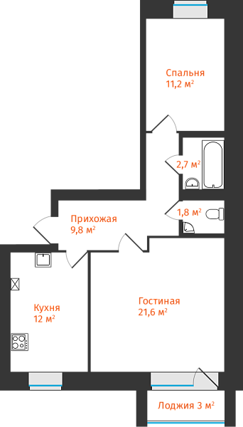Новая 2-комнатная квартира в ЖК Норские резиденции на 2 этаже площадью 60.69 м² в 1 подъезде номер 8