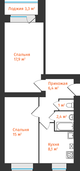 Новая 2-комнатная квартира в ЖК Норские резиденции на 1 этаже площадью 52.40 м² в 2 подъезде номер 14