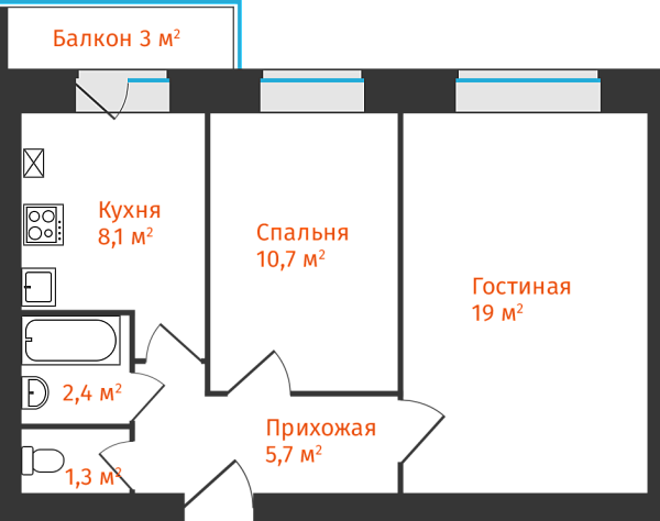 Новая 2-комнатная квартира в ЖК Норские резиденции на 1 этаже площадью 48.00 м² в 2 подъезде номер 17