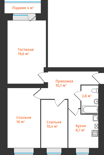 Новая 3-комнатная квартира в ЖК Норские резиденции на 2 этаже площадью 71.24 м² в 1 подъезде номер 4