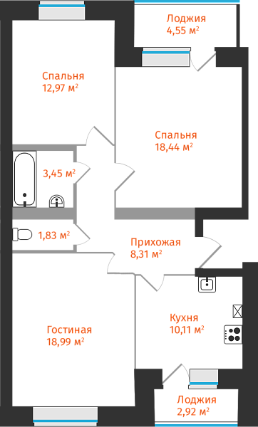 Новая 3-комнатная квартира в ЖК Норские резиденции на 1 этаже площадью 77.84 м² в 4 подъезде номер 33
