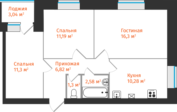 Новая 3-комнатная квартира в ЖК Норские резиденции на 1 этаже площадью 61.29 м² в 4 подъезде номер 34