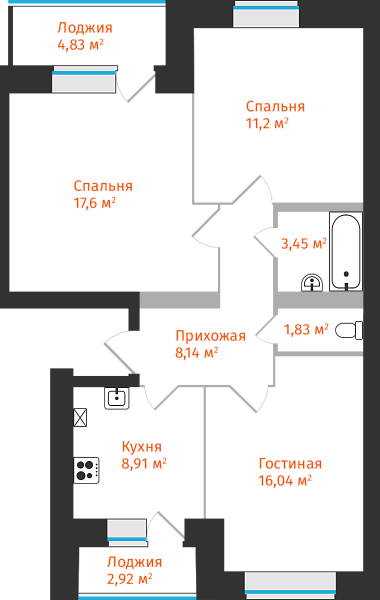 Новая 3-комнатная квартира в ЖК Норские резиденции на 2 этаже площадью 77.87 м² в 3 подъезде номер 28