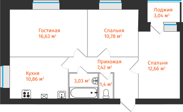 Новая 3-комнатная квартира в ЖК Норские резиденции на 3 этаже площадью 66.11 м² в 2 подъезде номер 20