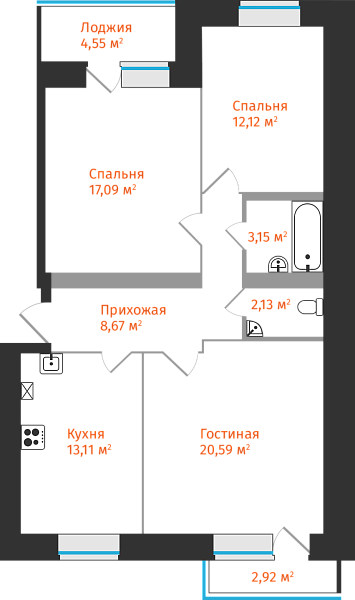 Новая 3-комнатная квартира в ЖК Норские резиденции на 4 этаже площадью 73.56 м² в 2 подъезде номер 24