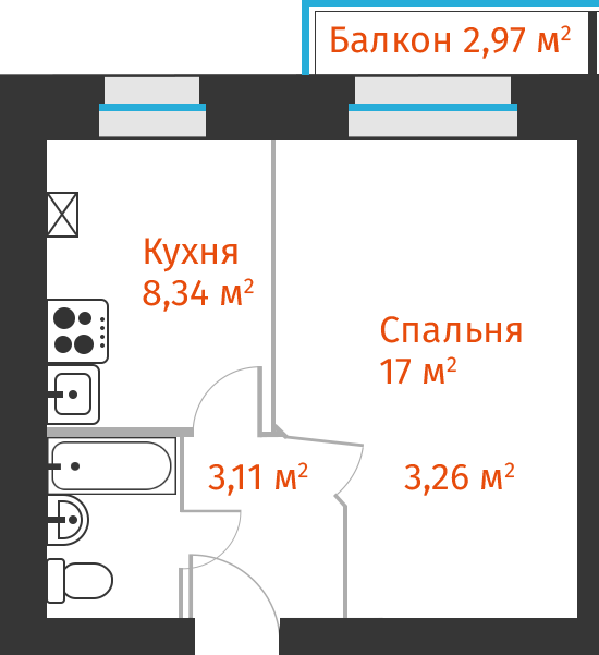 1-комнатная, 32.4м²