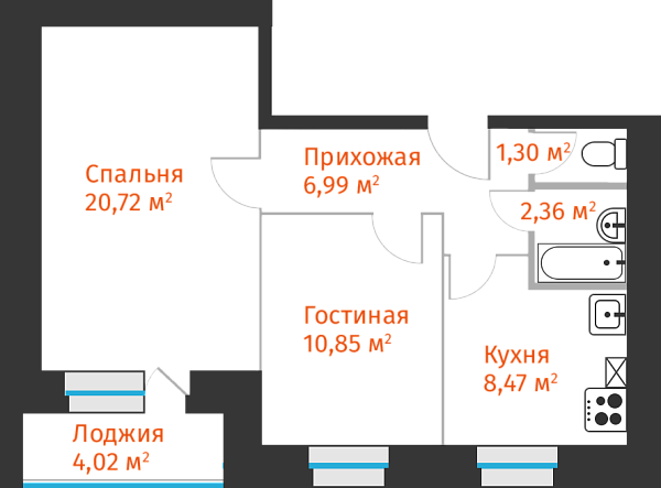 Новая 2-комнатная квартира в ЖК Норские резиденции на 4 этаже площадью 52.70 м² в 1 подъезде номер 16