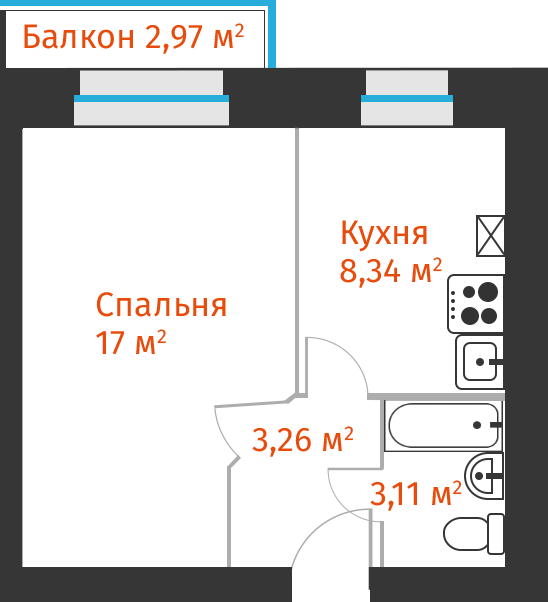 1-комнатная, 32.4м²
