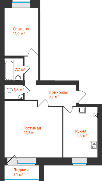 2-комнатная, 59.85м²