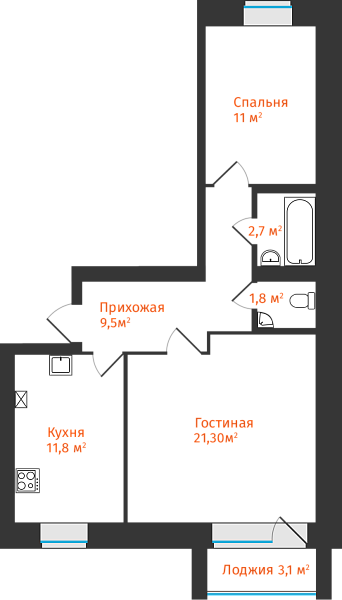 Новая 2-комнатная квартира в ЖК Норские резиденции на 1 этаже площадью 59.20 м² в 2 подъезде номер 20
