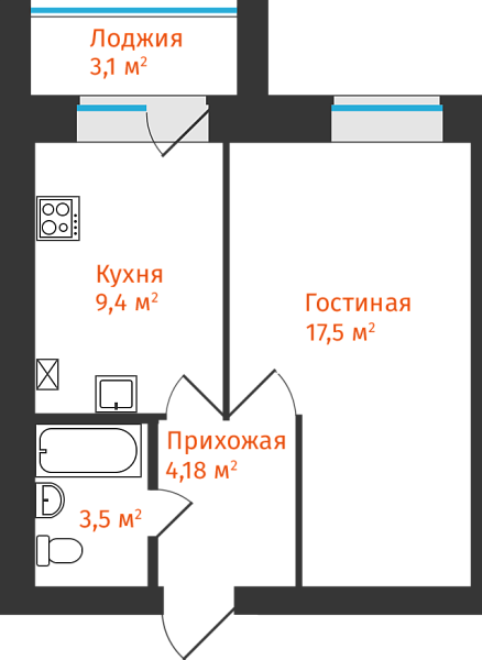 Новая 1-комнатная квартира в ЖК Норские резиденции на 3 этаже площадью 35.90 м² в 2 подъезде номер 27