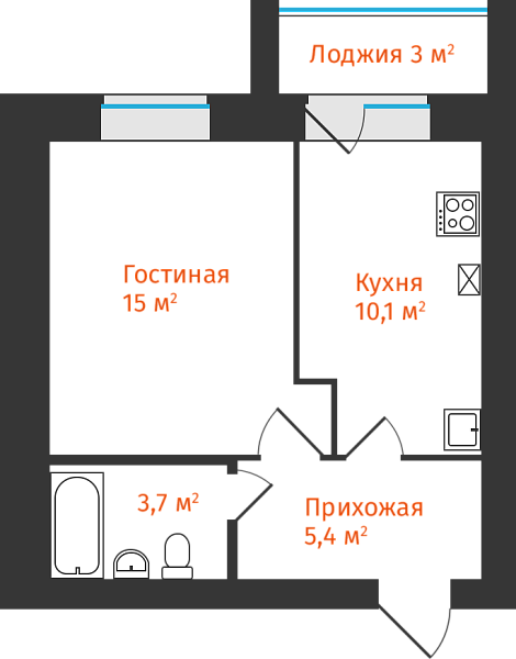 Новая 1-комнатная квартира в ЖК Норские резиденции на 1 этаже площадью 35.82 м² в 1 подъезде номер 2